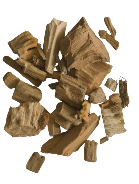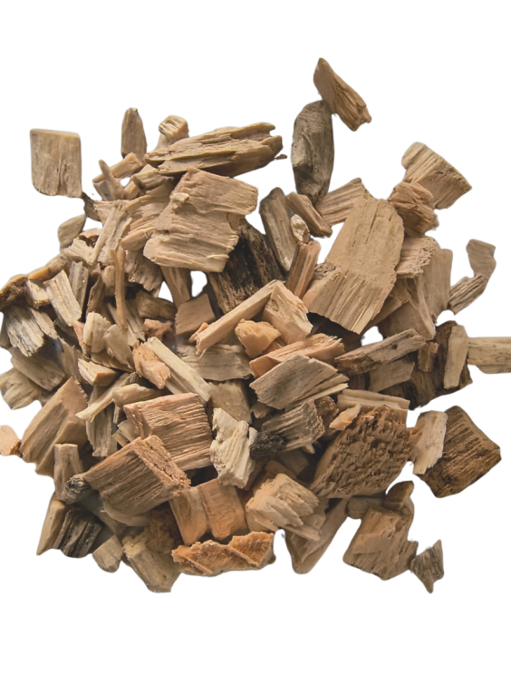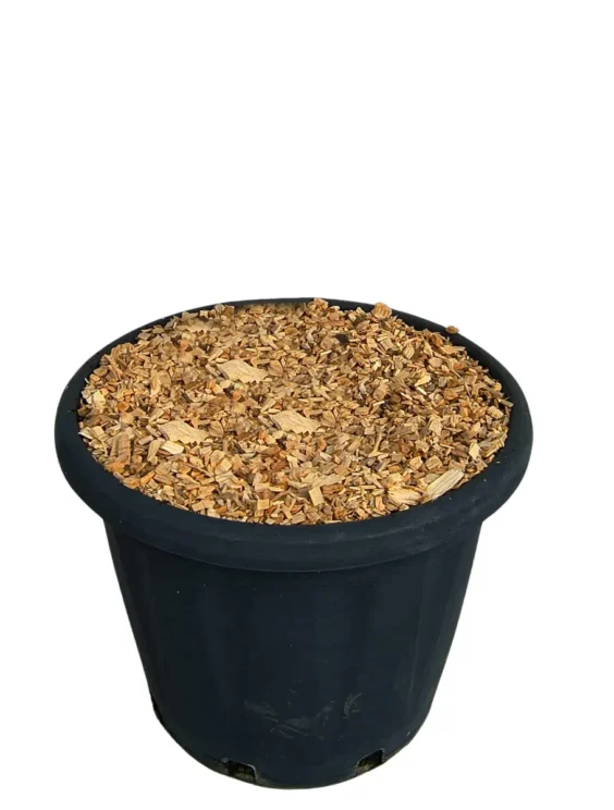 Più acido del cippato di faggio, questo materiale nel medio periodo può abbassare il pH delle piante risultando quindi più adatto a specie tolleranti. Presenta resine e oli naturali che fanno sì che si decomponga più lentamente, risultando ideale per chi desidera una pacciamatura di lunga durata che non richieda interventi frequenti.